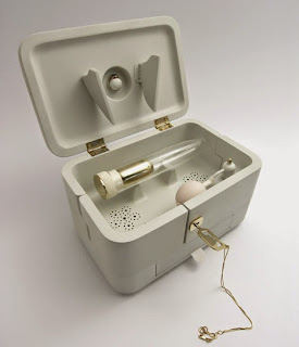 The strangest thing I found (and please, let's not discuss how I found this) is a dildo with a small urn inside into which you can put the ashes of your loved one who has passed on. No, I am not making this up. This is the brainchild of Dutch designer Mark Sturkenboom. It's part of a keepsake box that holds memories. It includes a built in fragrance bottle and atomizer, a place for a ring, a drawer for small mementos, and a plug in for an ipod and speakers to play music. It also includes a plastic dildo with a removable gold urn. You can place your loved ones ashes inside the urn, fit it back into the dildo and....well, you get the picture.