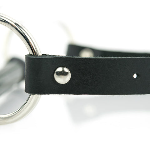 This gag is crafted with a silicone bit and a black, adjustable leather strap. Built with a sturdy 5/6-ounce leather for a longer-lasting playtime. The leather-make is complemented by polished metals for a tasteful aesthetic, while the bit gag provides a comfy option compared to your regular ball gag.